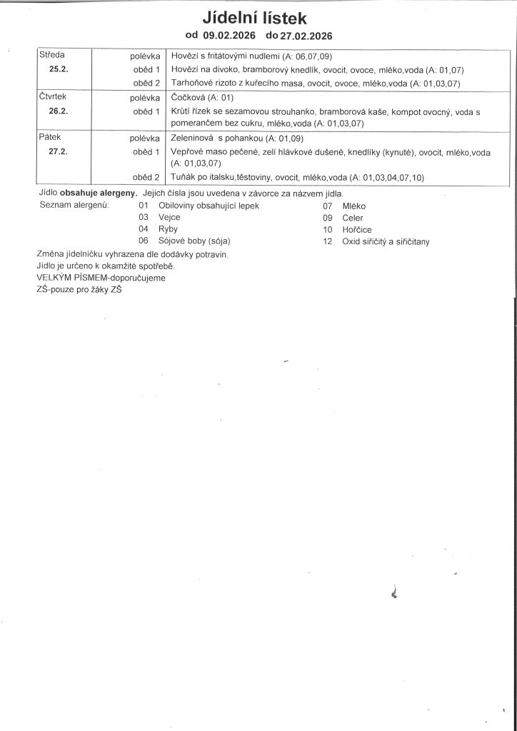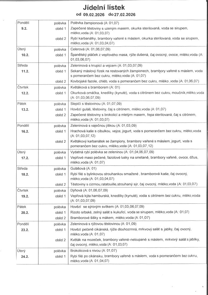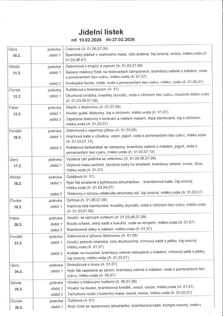 Informace k jídelně