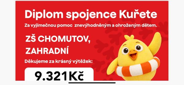 Máme radost! Z nadace Pomozte dětem k nám dorazilo milé poděkování za naši účast v Peříčkovém týdnu. Díky obrovskému nasazení organizátorů dobročinné tomboly a štědrosti našich žáků, rodičů i zaměstnanců se podařilo vybrat krásných více než 9 000 Kč. Děkujeme… Pokračovat ve čtení →